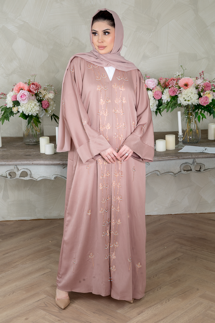 This gorgeous abaya features stunning embellishments on the front, making it perfect for any special
