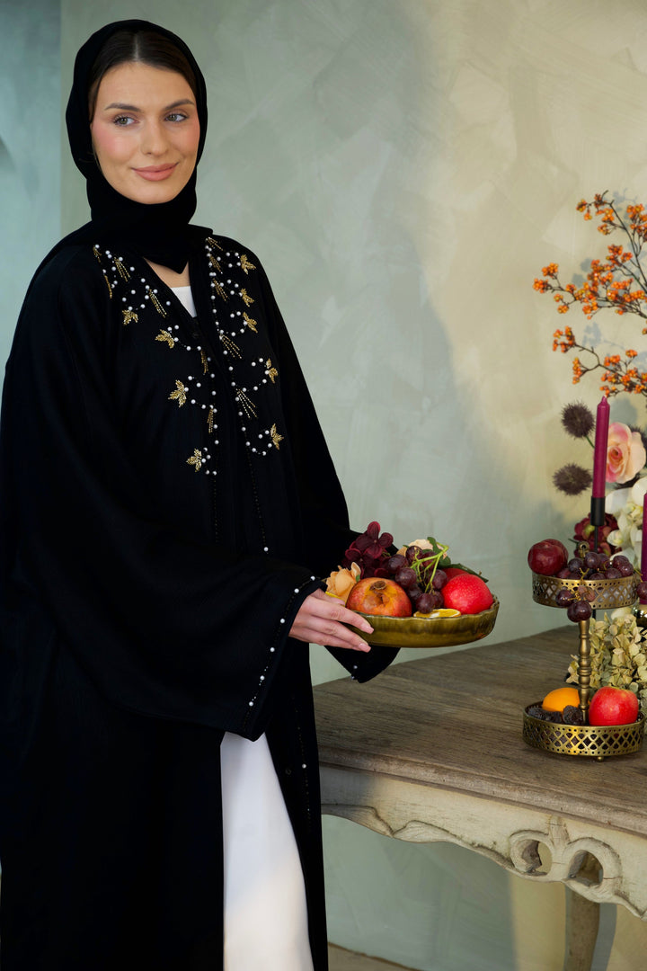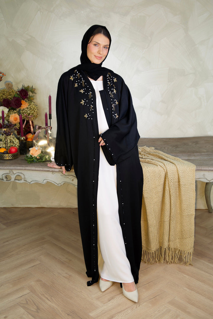 A gorgeous abaya with stunning embellishment on the front. This abaya is perfect for any