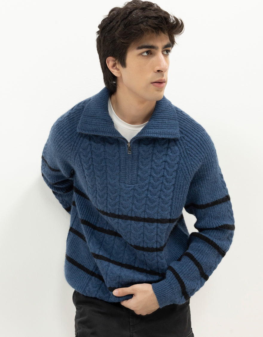 VENUS - MID BLUE SHORT MOCK SWEATER - J. Junaid Jamshed