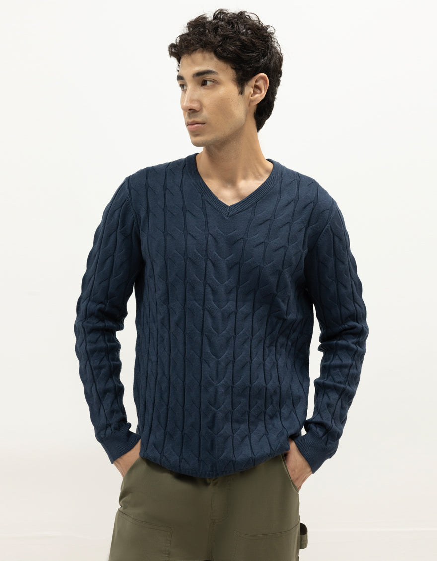 PLUTO B - NAVY V-NECK SWEATER - J. Junaid Jamshed