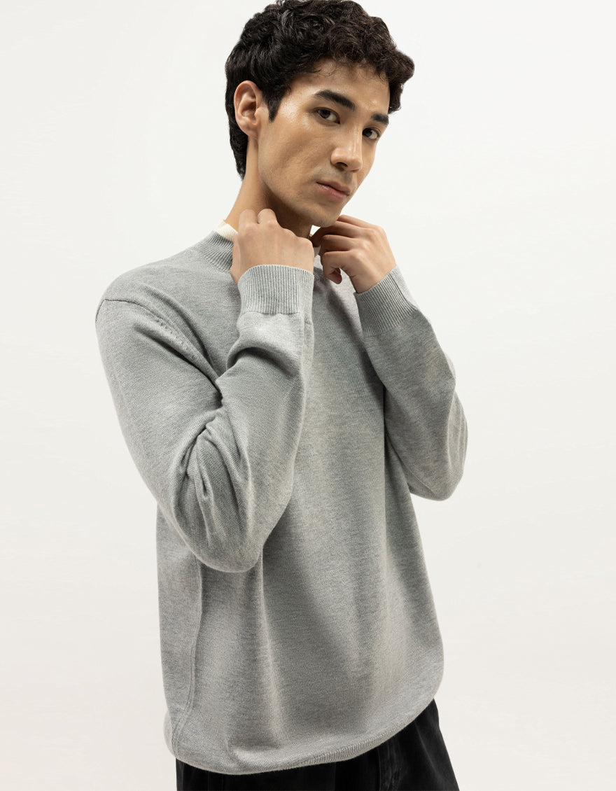 VENUS - LIGHT GREY SHORT MOCK SWEATER - J. Junaid Jamshed