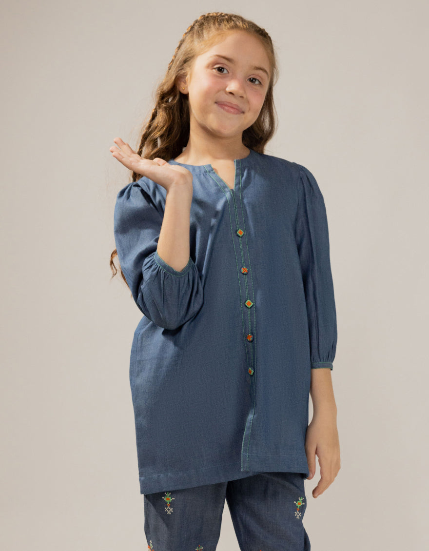 Parents will appreciate the easy maintenance of this outfit, as the fabric is designed to withstand regular washing without losing its color or shape. The Denim Blue Stitched Suit by J. Junaid Jamshed is a reliable choice that combines tradition and contemporary fashion, making it an excellent addition to any child’s wardrobe.