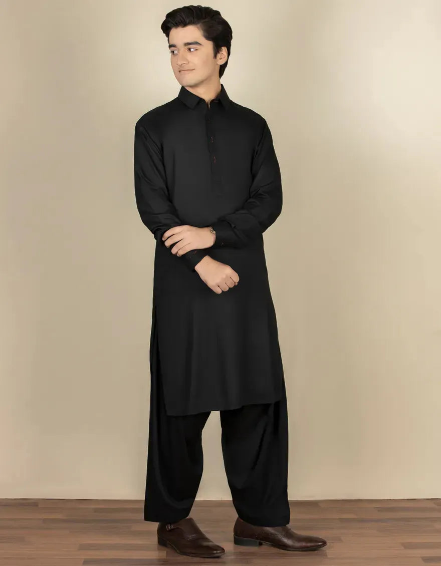 A well-crafted Blended Teens Kameez Shalwar featuring detailed stitching and tasteful patterns. Contrasting or matching buttons give it a stylish edge without losing its elegant charm. A smart choice for teens who prefer a decent yet trendy outfit