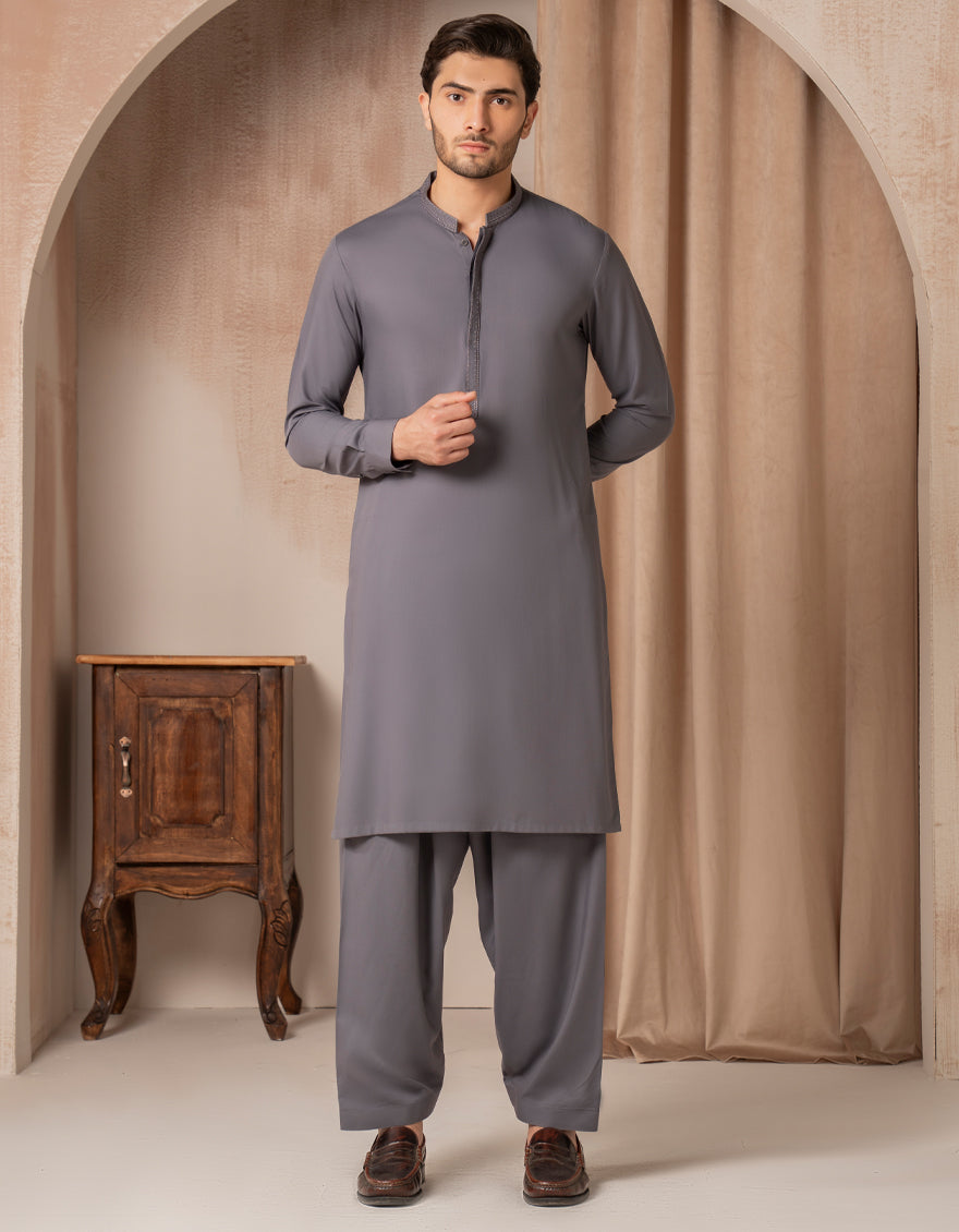 Blended Stone Grey Shalwar Kameez - J. Junaid Jamshed