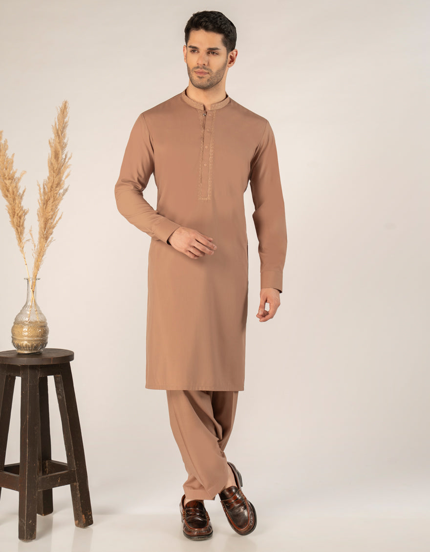 Blended Brown Shalwar Kameez - J. Junaid Jamshed