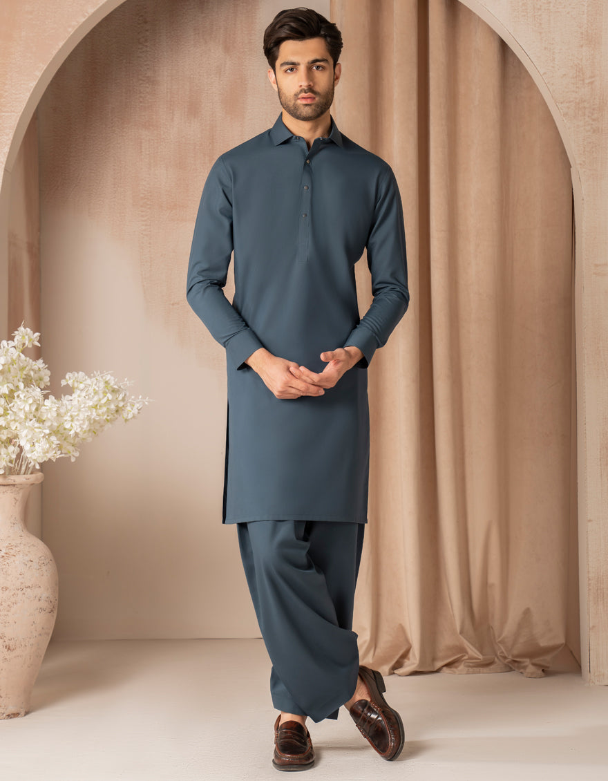 Blended Blue Kurta Trouser - J. Junaid Jamshed