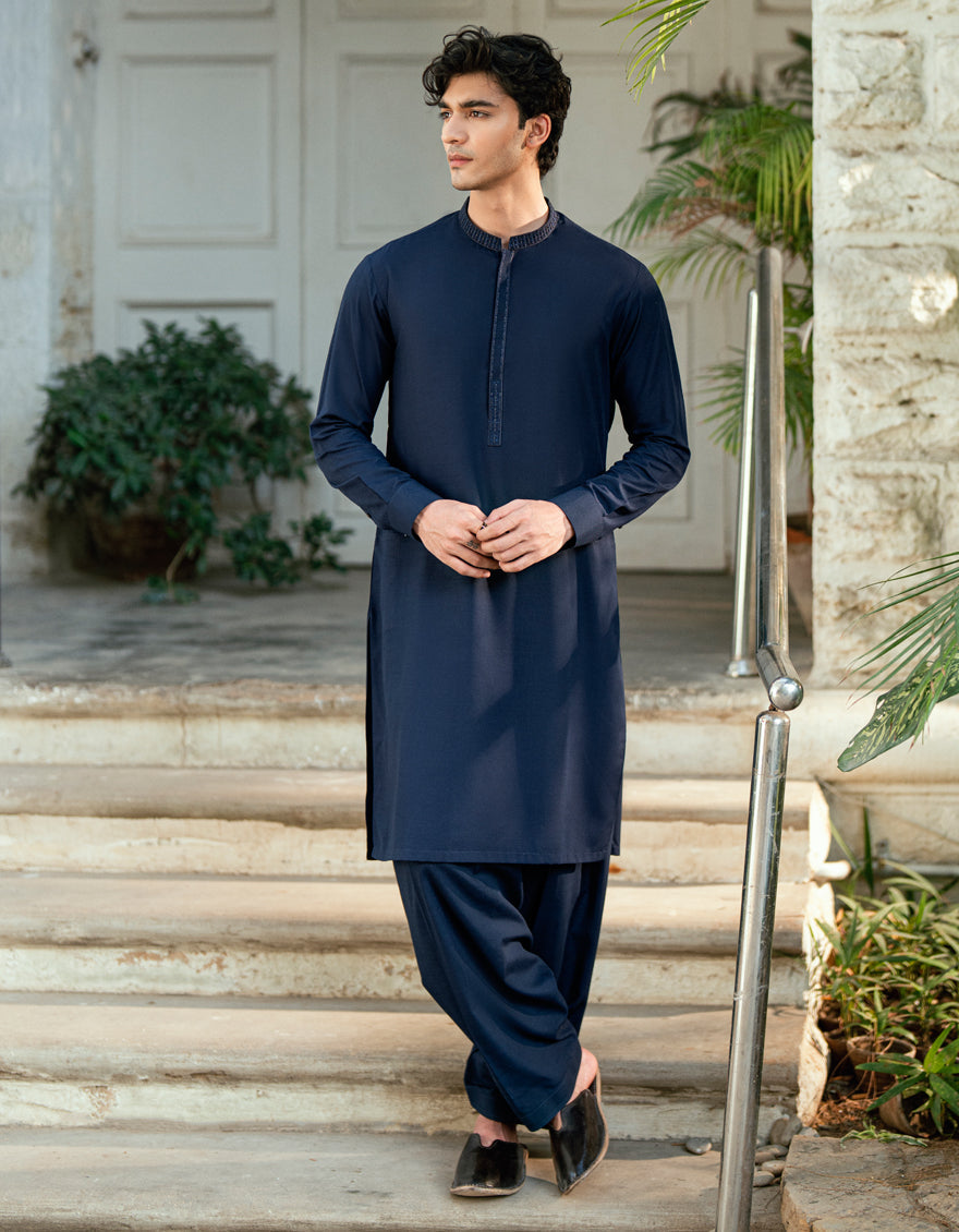 Blended Navy Blue Kurta Trouser - J. Junaid Jamshed