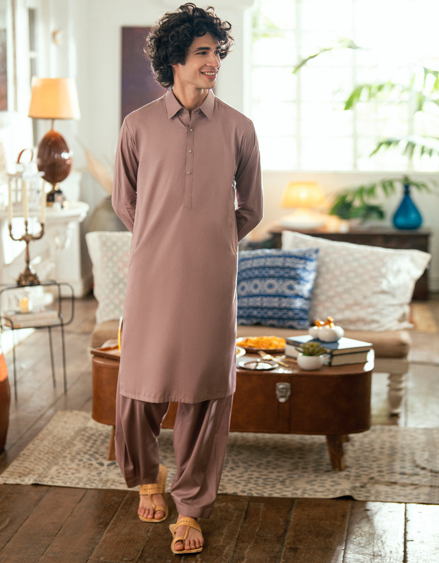 Cotton Mauve Shalwar Kameez - J. Junaid Jamshed