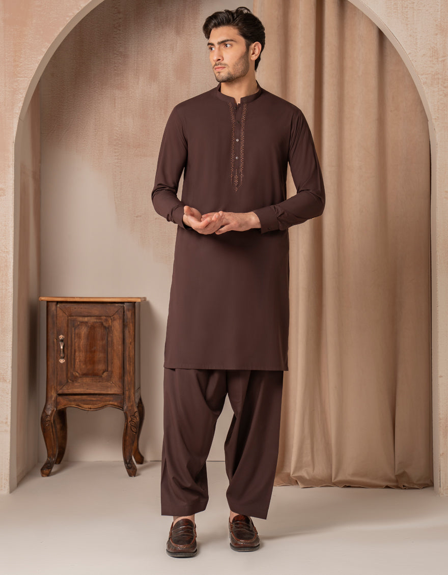 Blended Dark Brown Shalwar Kameez - J. Junaid Jamshed