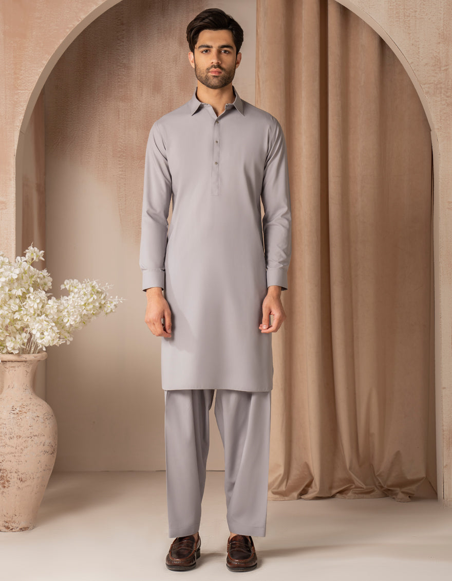 Blended Grey Shalwar Kameez - J. Junaid Jamshed