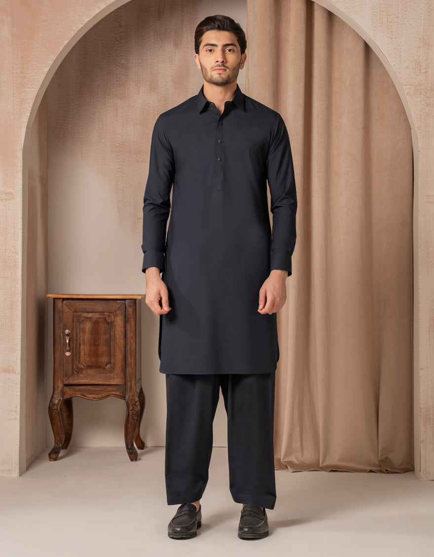 Blended Navy Blue Shalwar Kameez - J. Junaid Jamshed