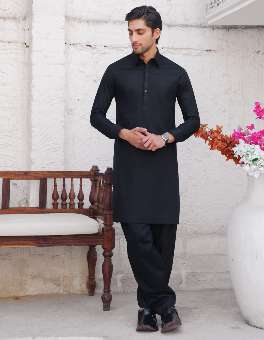 Cotton Black Shalwar Kameez - J. Junaid Jamshed