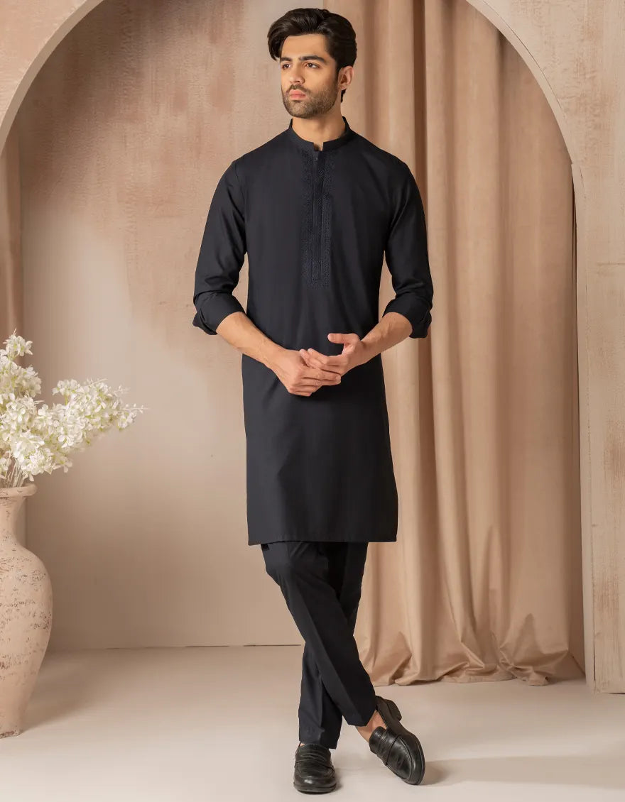 Blended Navy Blue Kurta Trouser - J. Junaid Jamshed
