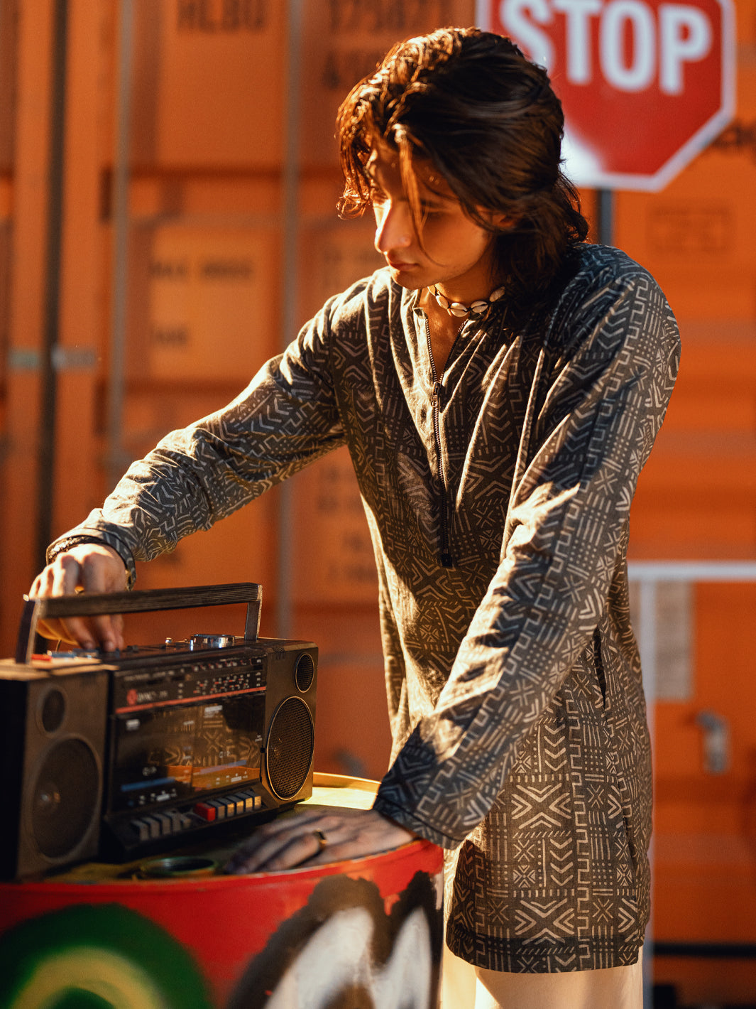 Digital Printed Kurta Complemented By a Zipper Detail on the Placket and a Refined Cut-And-Sew Design.