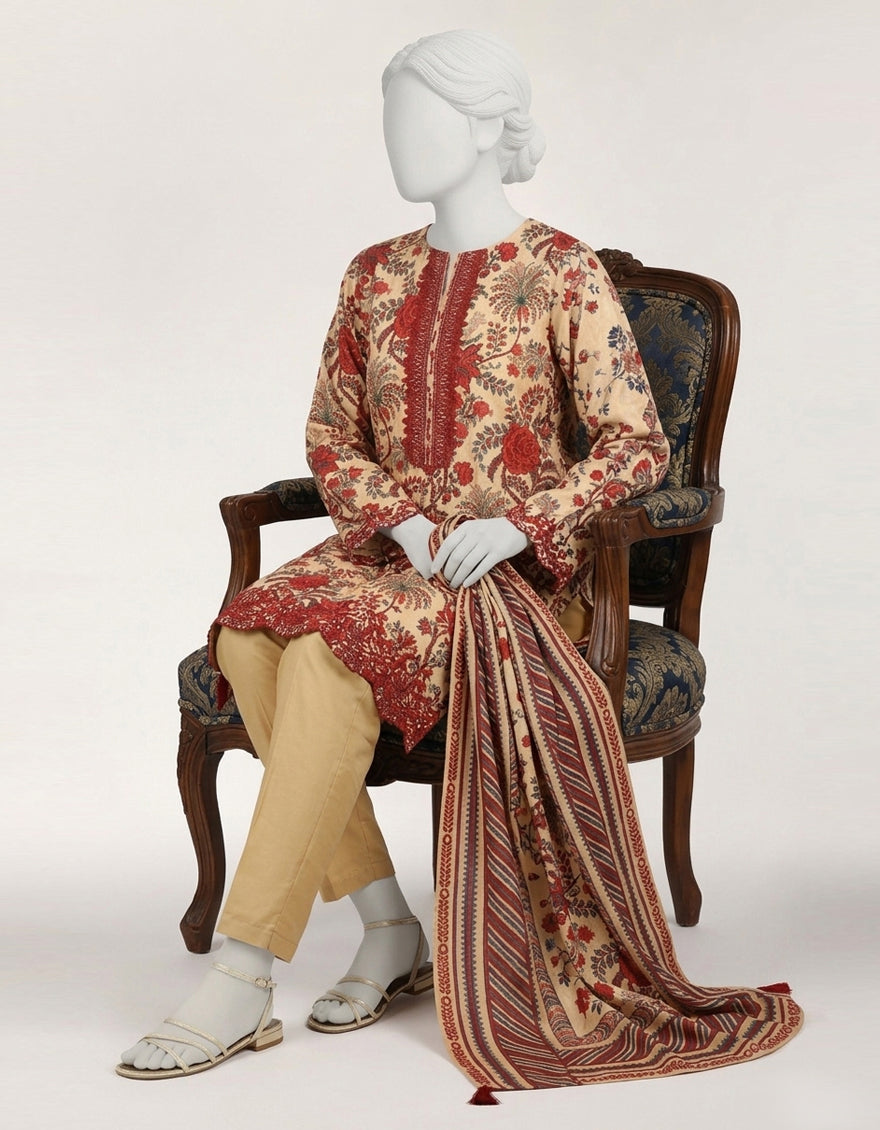 Lawn Beige Stitched Suit - J. Junaid Jamshed