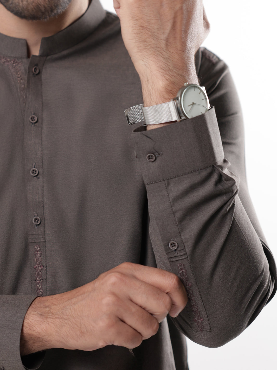 Semi Formal Kameez Shalwar Adorned With Asymmetrically Placed Intricate Embroidery