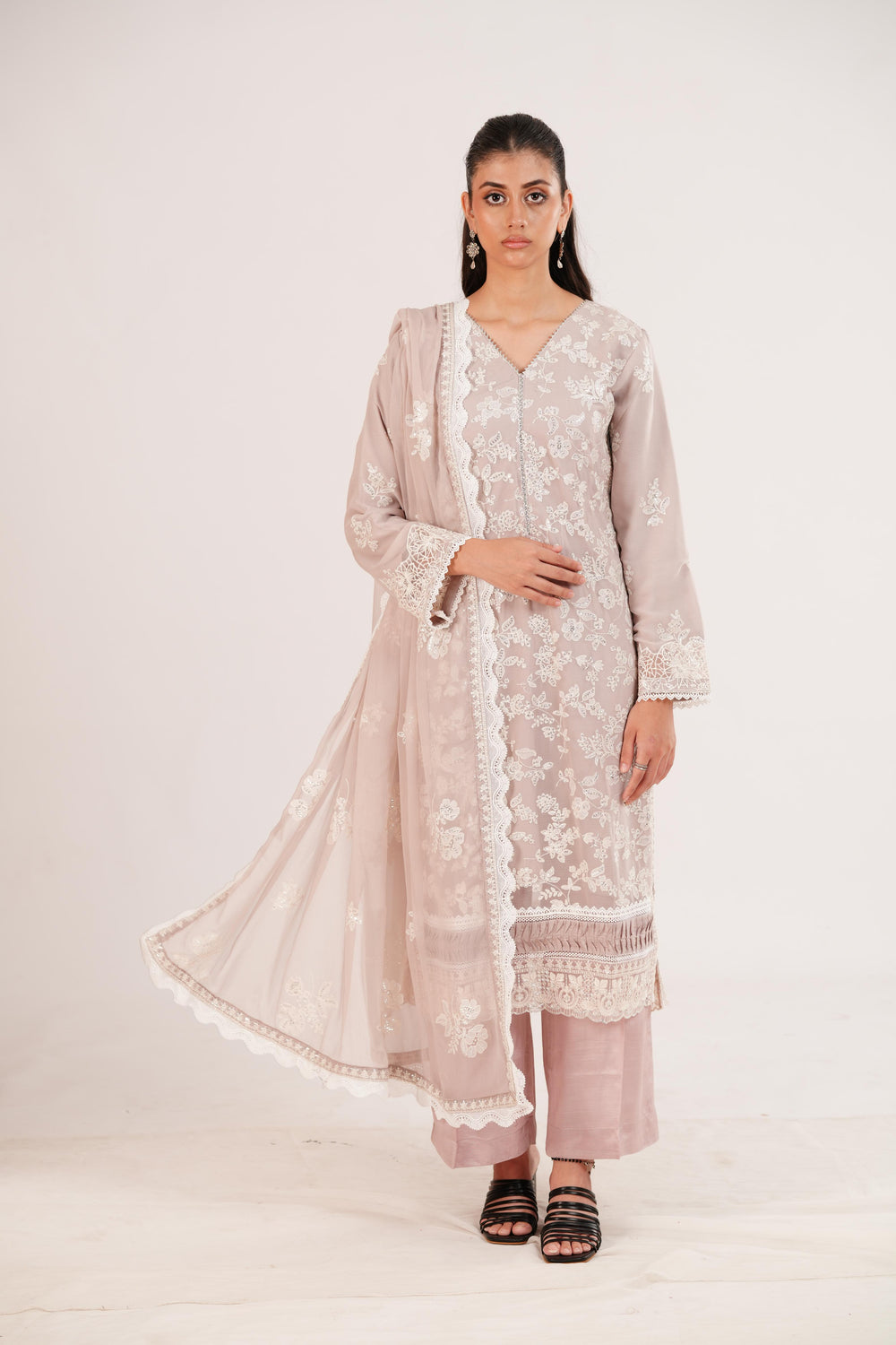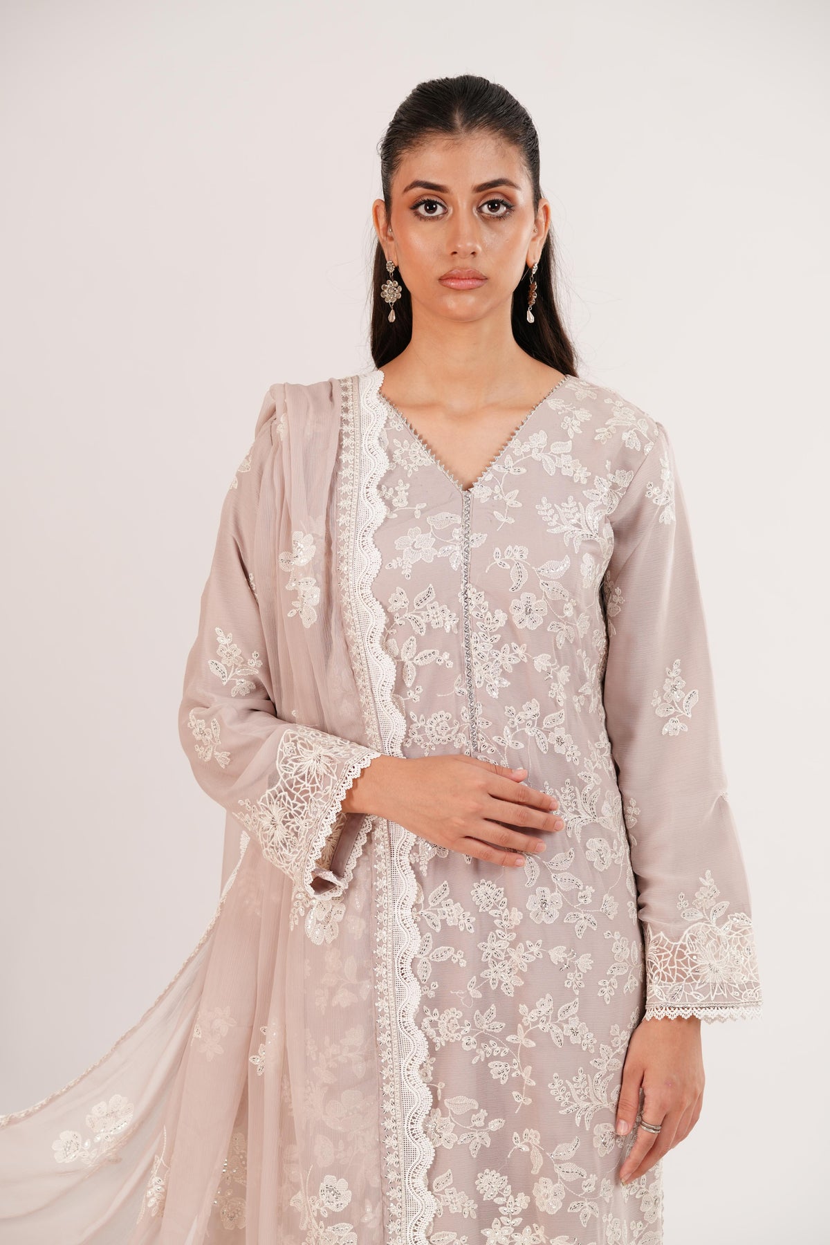 Embroidered Chiffon Front
