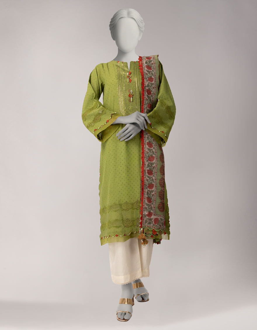 Lawn Green Unstitched Suit - J. Junaid Jamshed