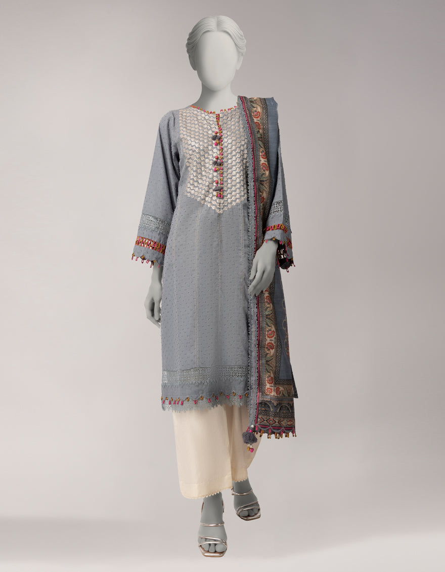 Doria Grey Unstitched Suit - J. Junaid Jamshed