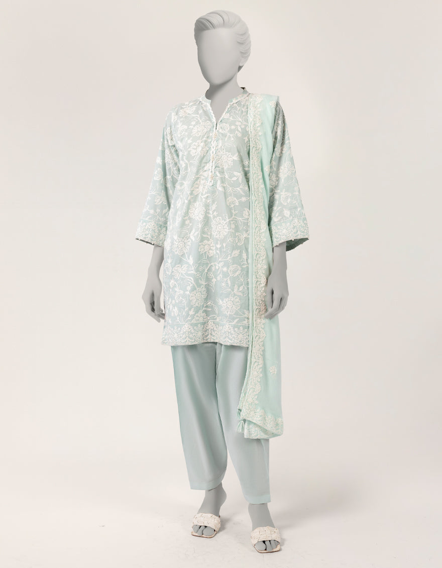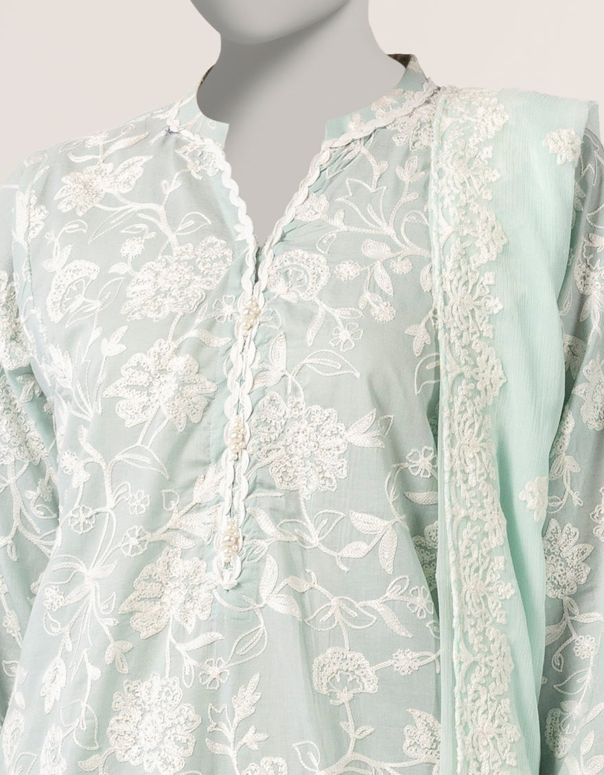 Lawn Green Stitched Suit - J. Junaid Jamshed