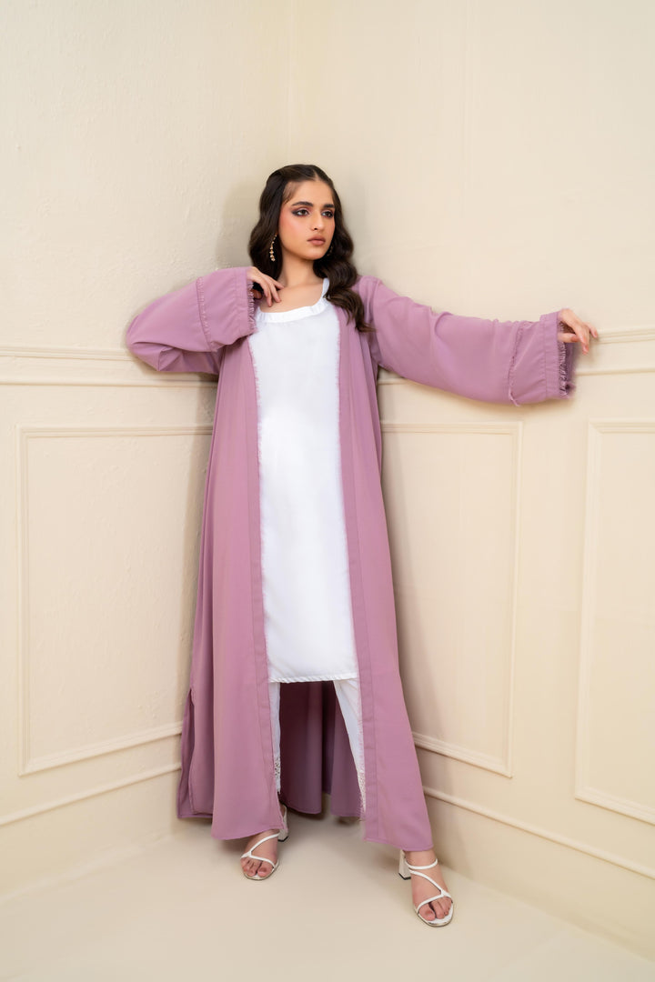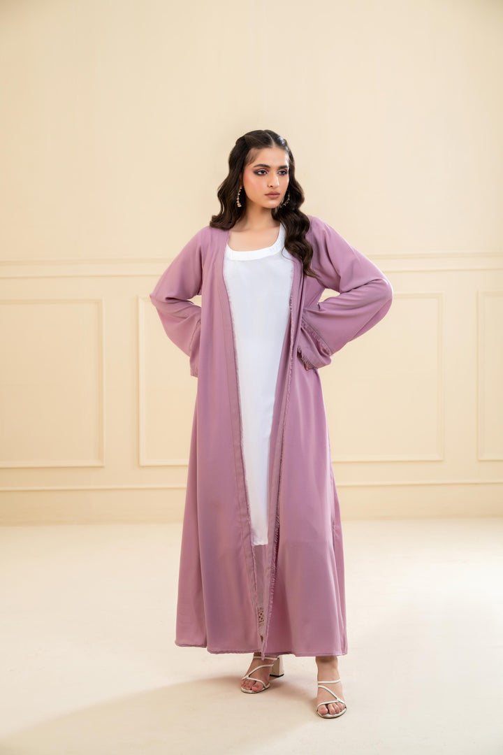 The Amina Textured Open Abaya captures a delicate blend of minimalism and grace. Designed in a calming mauve hue, this flowy open abaya is tailored from a lightweight textured fabric that sways beautifully with every step. Perfect for layering over your everyday or occasion-wear, it adds refined modesty without effort.