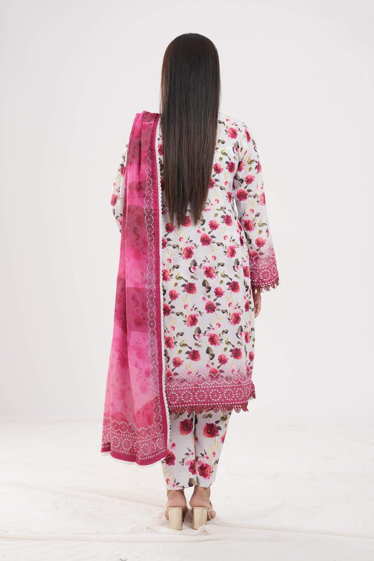 3 Piece Printed Lawn Shirt Shalwar Dupatta in White Color