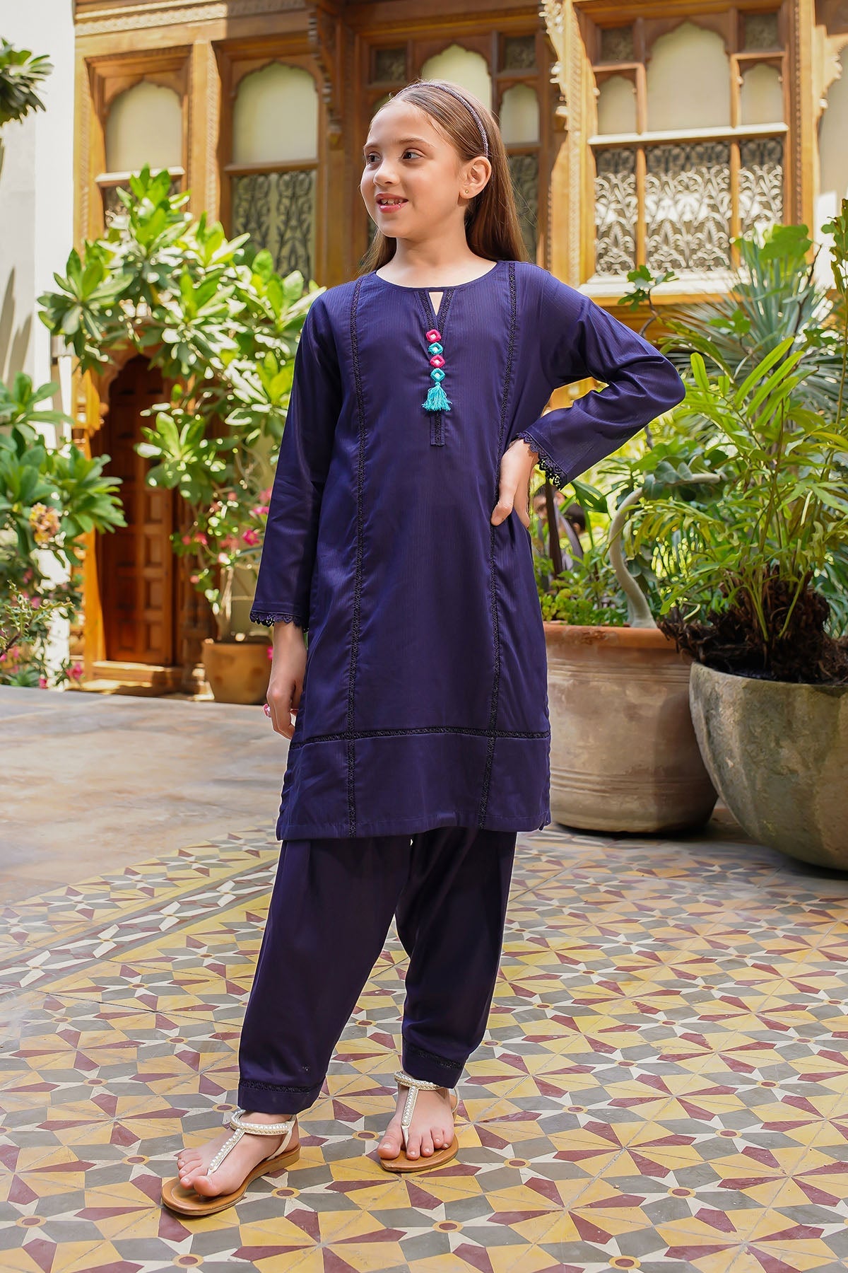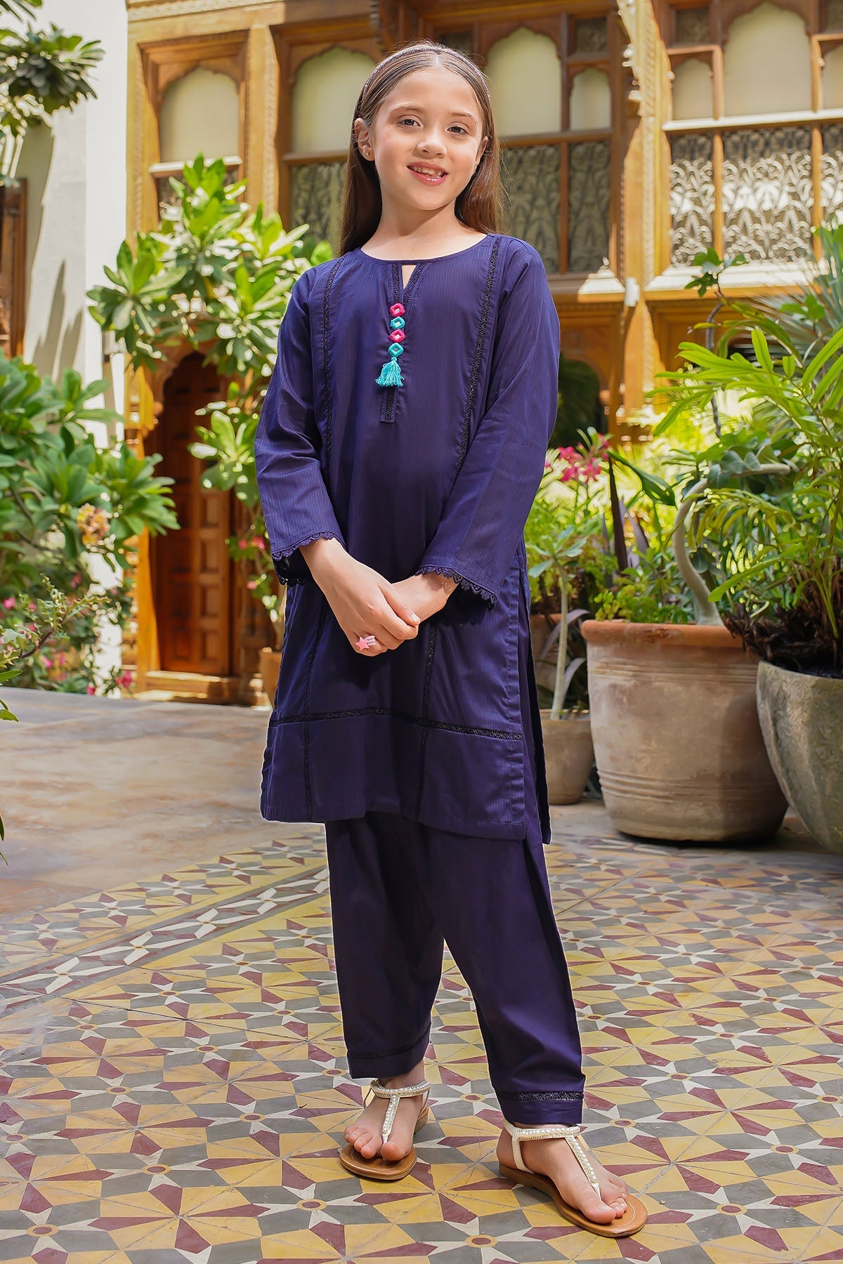 Top: Navy Blue Dobby Cotton Kurta With Laces Bottom: Navy Cotton Shalwar with Laces