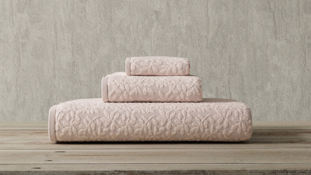 Vantona Luxury Leaf Jacquard Cotton Towel – Pink