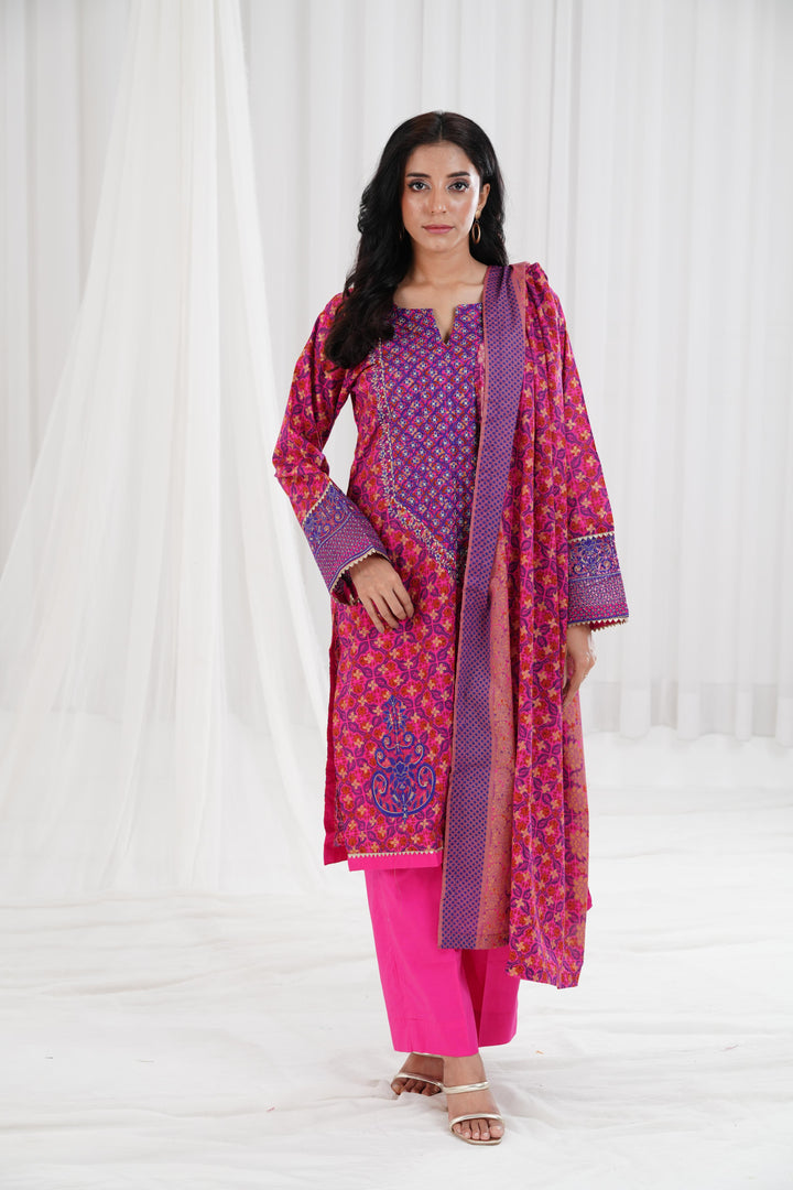 Unleash your creativity with gold printed embroidered three-piece from the latest unstitched summer collection.