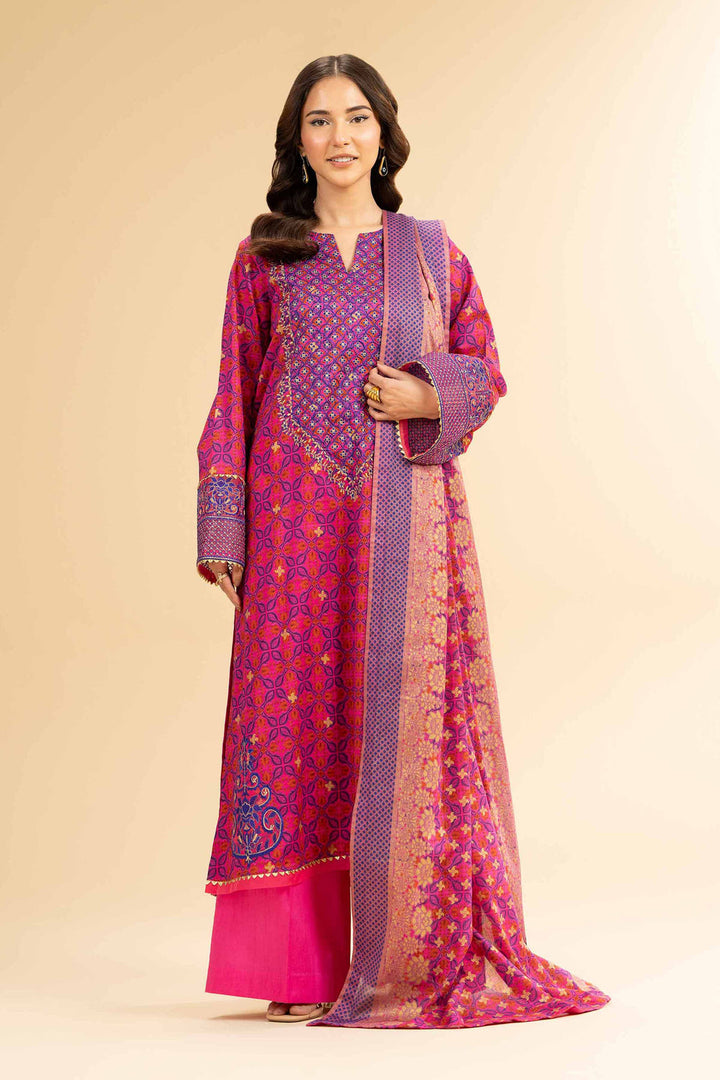 Gold Printed Embroidered Pink Stitched Suit - Nishat