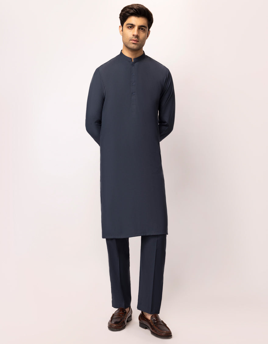 Blended Navy Blue Unstitched Suit - J. Junaid Jamshed