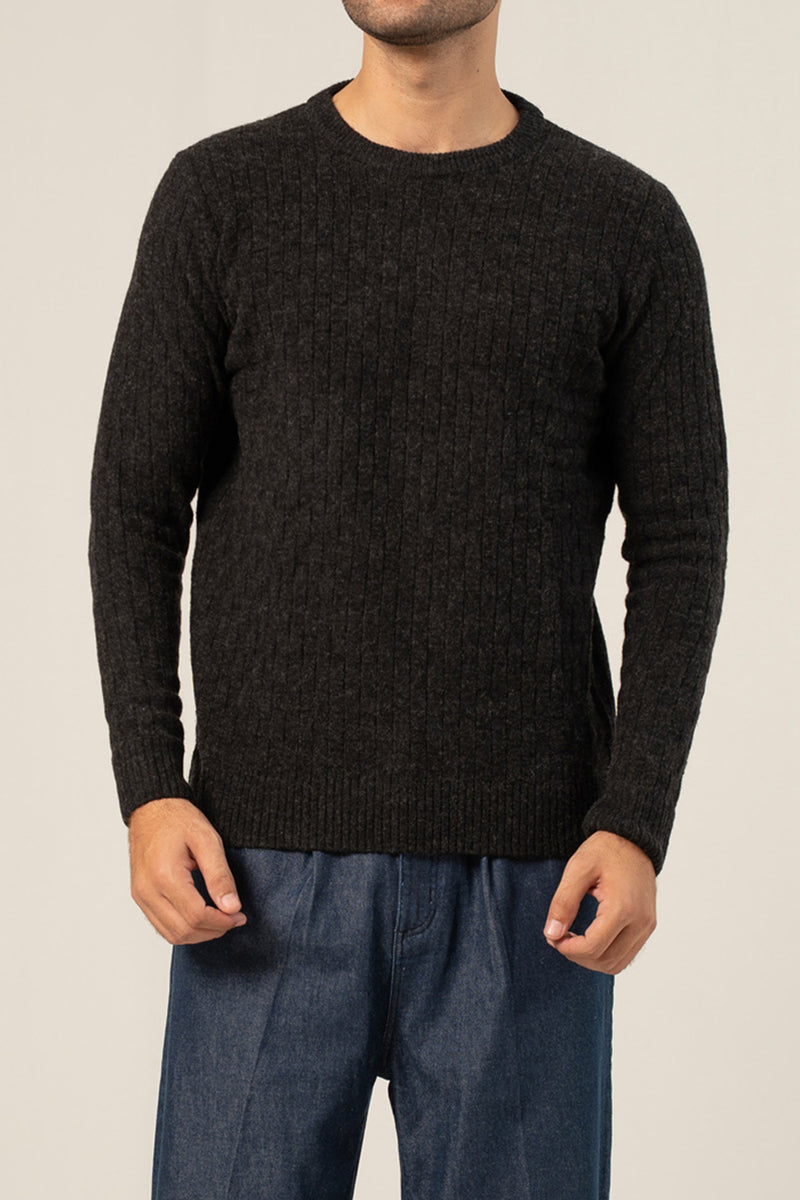 Lambs Wool Charcoal Designer Sweater - Cambridge
