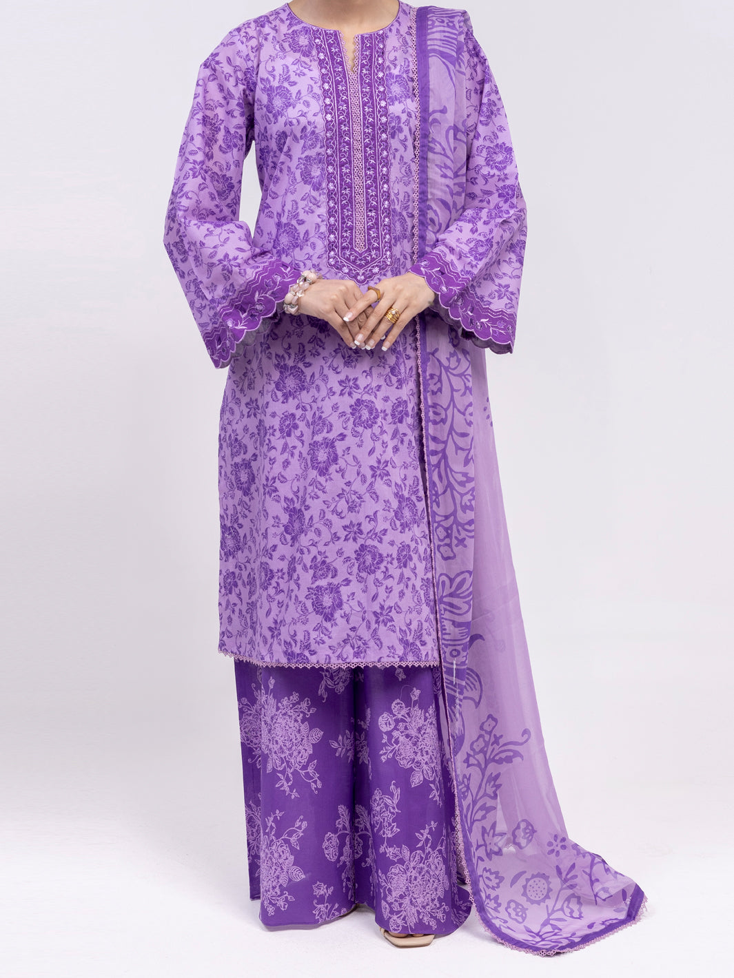 Lawn Purple Unstitched Suit - Almirah