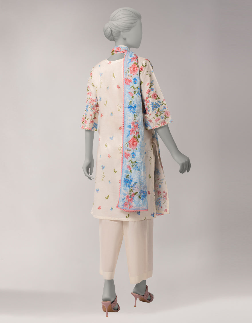Lawn Off White Stitched Suit - J. Junaid Jamshed