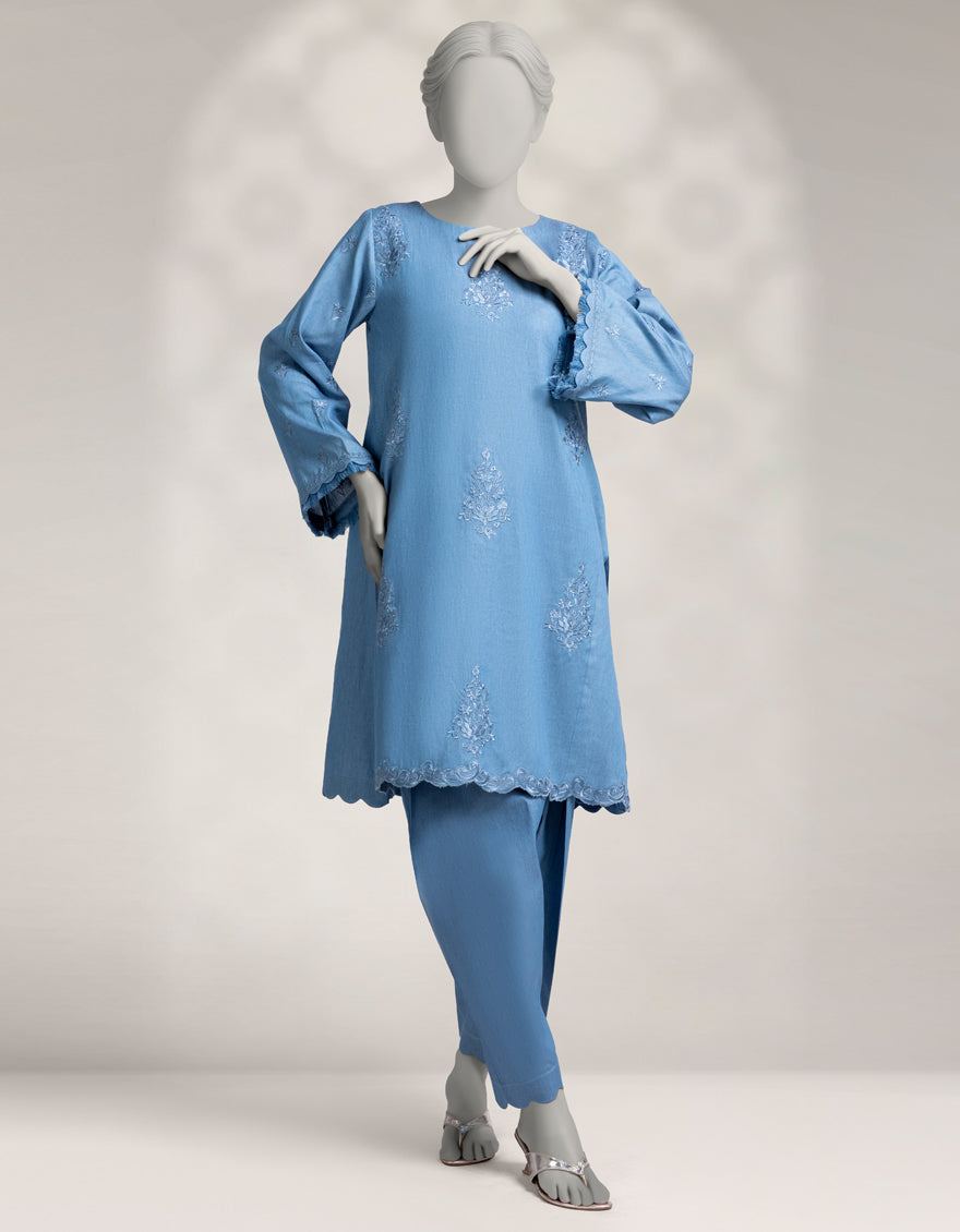 Denim Blue Stitched Suit - J. Junaid Jamshed