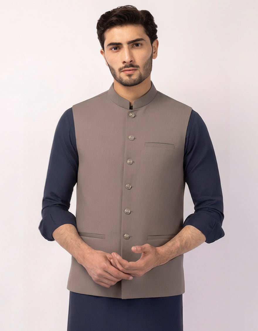 Blended Stone Grey Waist Coat - J. Junaid Jamshed