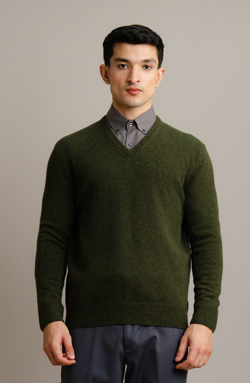 Lambs Wool Olive Designer Sweater - Cambridge